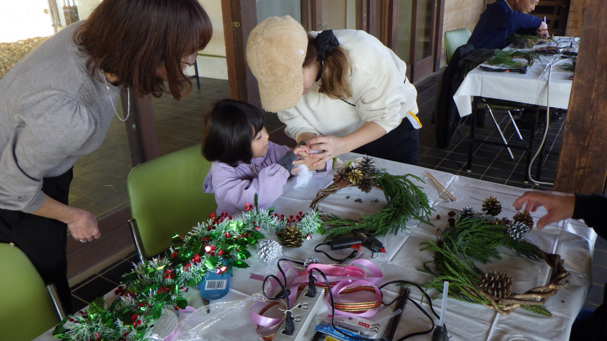 その他にもクリスマスリース製作会場では展示パネルをご覧頂き、地下水と森林の関係、森林が土砂災害の防止や地球温暖化防止にも役立っていることについて関心をお寄せいただきました。