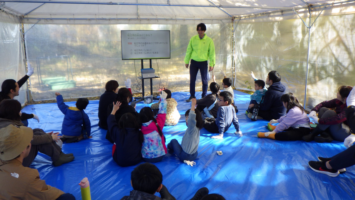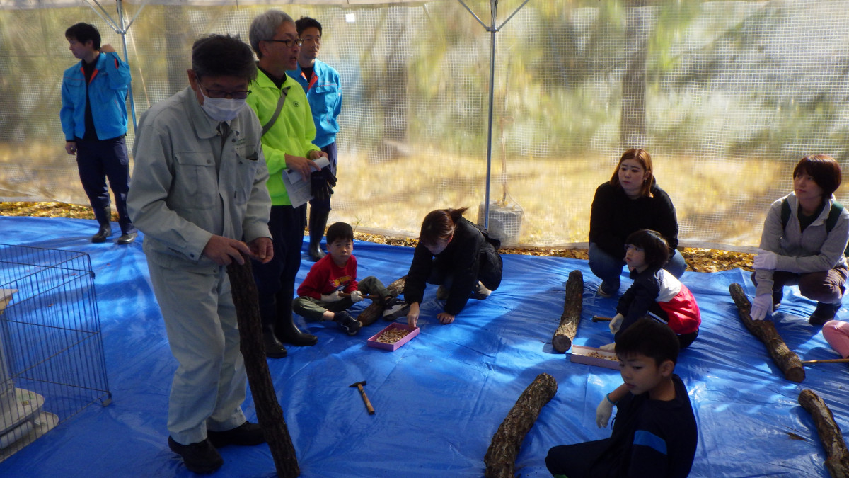 2025年11月25日11月15日(土)忌部自然休養村にて総勢109名の参加者のもと「第16回 忌部水源の森づくり交流会」を開催しました。昨年に引き続き忌部水源の流域にあたる忌部小学校、大庭小学校、乃木小学校及び水の都プロジェクト協議会の小学生とその保護者の62名(大人29名、子ども33名)をお招きし、自然素材を利用したクリスマスリースづくりや丸太切り体験、しいたけ植菌作業、水道事業に関するクイズ等たくさんのイベントを楽しんでいただきました。