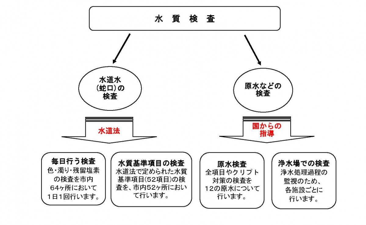 水道水の検査には色々な検査があります。これらの検査を全て行うことで安全性が保たれています。